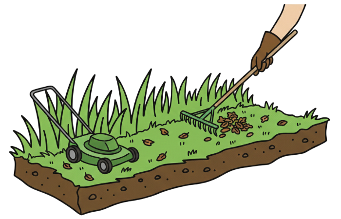 Thatch is a layer of dead grass and organic matter that builds up over time. Light scarifying removes this layer, allowing water, air and nutrients to reach the roots.